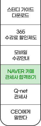 스터디가이드 다운로드 365 수강료 할인제도 모바일 수강안내 NAVER 카페 관세사 합격하기 Q-net 관세사 CEO에게 말한다